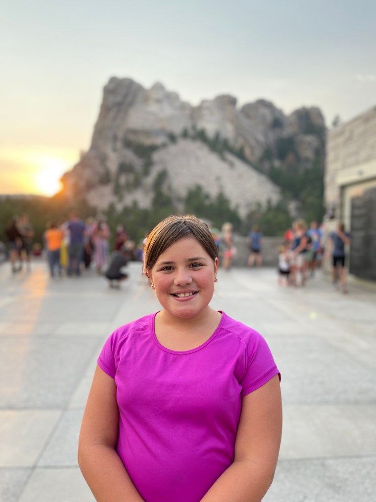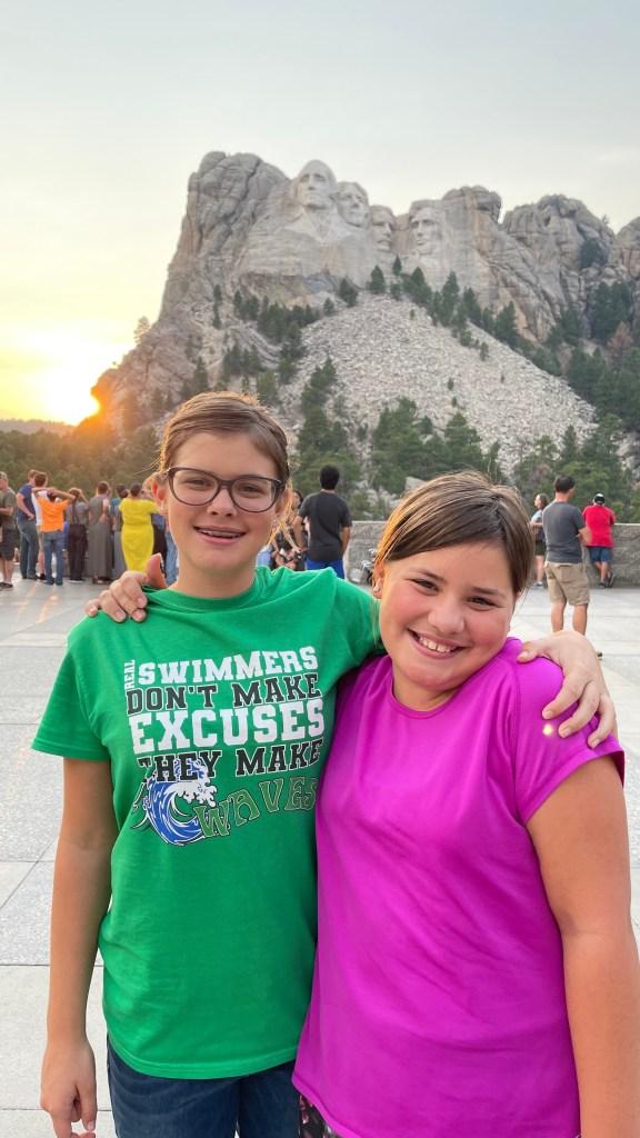 Today is day 5. We have 19 full days left. Today we drove from Wisconsin to Minnesota to South Dakota. It was very hot in South Dakota but it cooled down at night. we drove up to Mount Rushmore. We sat there for a while waiting for the sculpture illumination to start. When it finally started it was cool. They played a video about all the presidents that were in the sculpture. Then the park ranger told us how to leave after it was over. And then they lit up the sculpture.