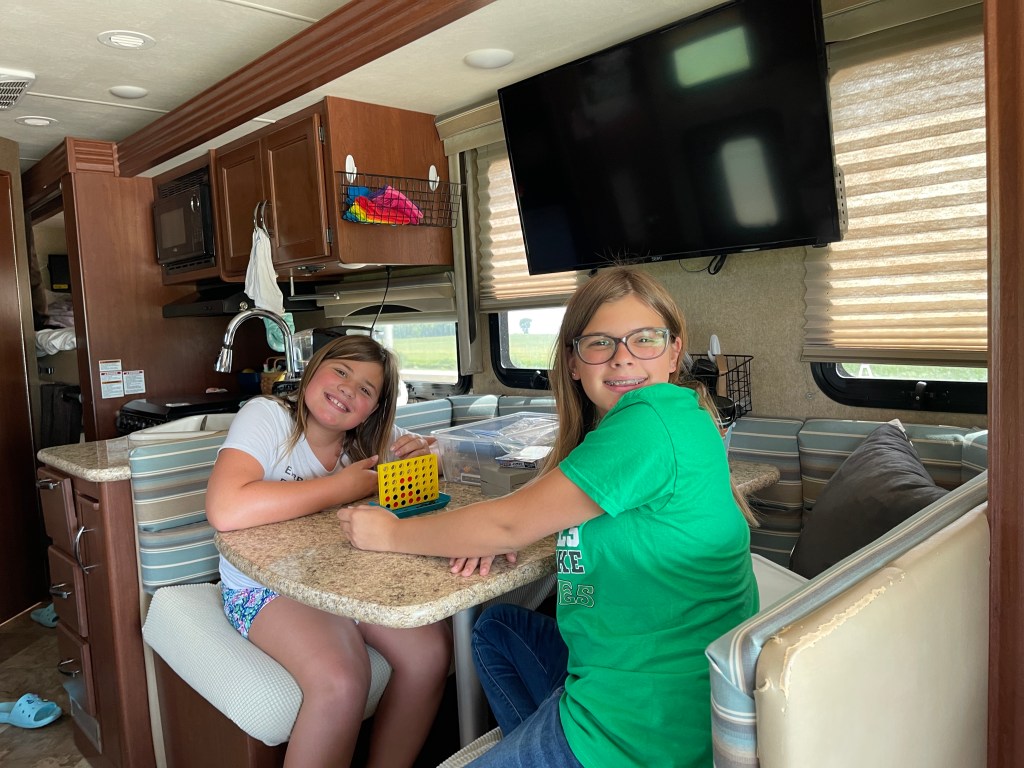 When we got annoyed with the girls having too much screen time and not enough QT with the fam, we had a little family “meeting” and everyone pledged to adjust their attitudes (yes, even Mom & Dad!) and then board games commenced! RV travel is just the best!