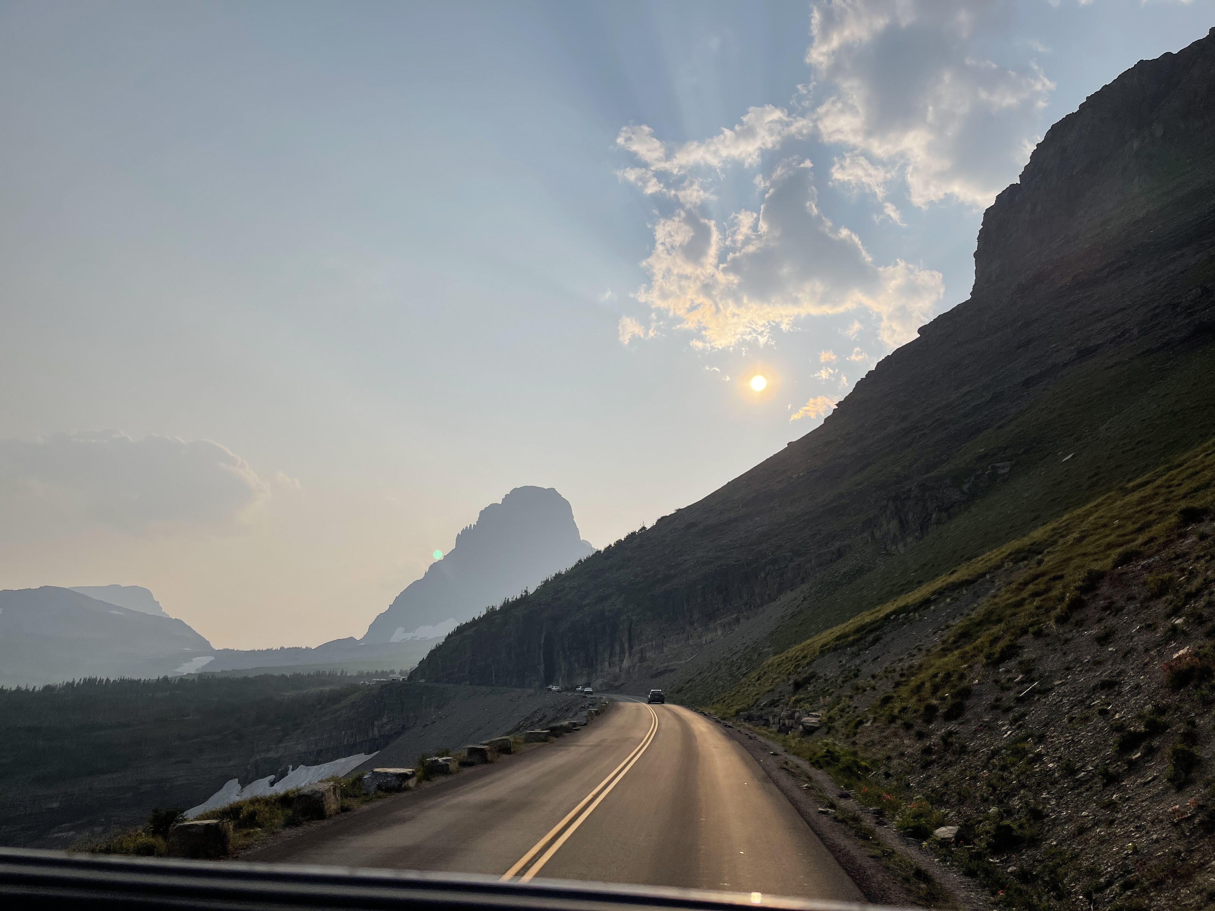 Remember when I mentioned there was a ticketed entry system to access the infamous “Going to the Sun Road”? Well, after 5pm anyone can enter and that is exactly what we did. We realized by the time we would be traversing the twisty-turny roads, the sun would be starting to set and crowds would be less. Our Plan B suddenly sounded like it should have been our initial plan all along – a revelation we were grateful to have stumbled upon.