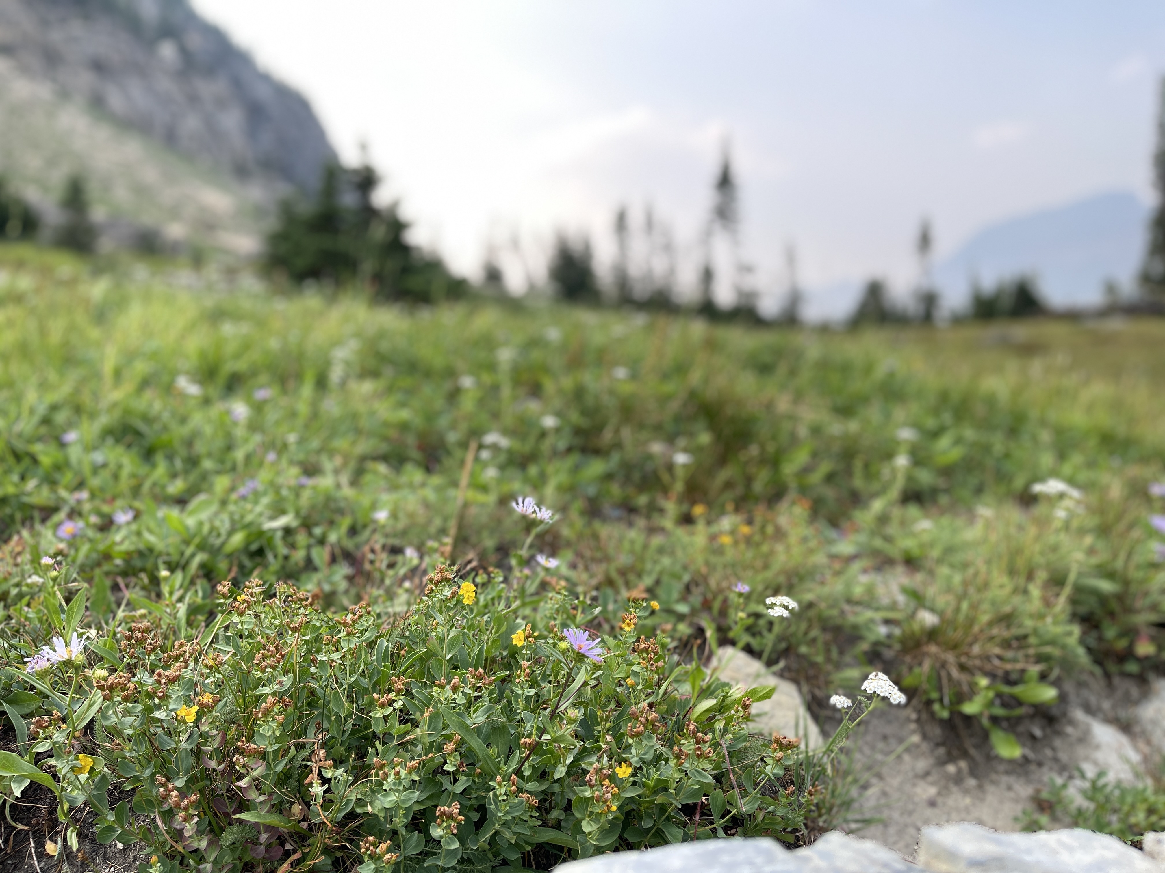 We were hopeful the frigid water would have a lasting impact on our core body temperatures for the hike down, but we quickly realized that would not be the case. Additionally, the flies were coming out in full force so we had no choice but to keep pressing on in order to avoid their annoyance. God clearly knew we were all in need of a bit of extra motivation after the first mile down, though. Some upward bound hikers mentioned to us that there was a giant bull moose in the very same lake we stopped at for our picnic lunch. Our pace definitely picked up with anticipation as we continued down the trail.