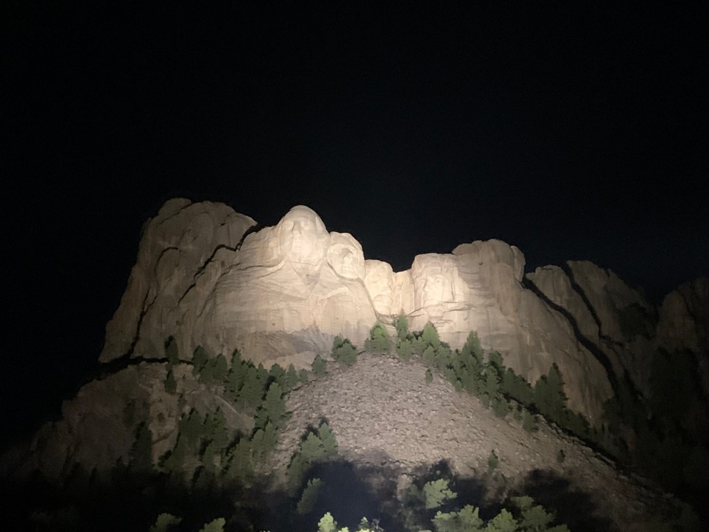 The first part of the day was extremely difficult. The drive was bumpy, there was nothing but fields for a view, and it was a steady 104 degrees the entire day. Our family even got into a small fight. The drive was 11 and a half hours long, so you could only imagine how bored we all were. My sister was constantly complaining, my mom was always hot, and I read through an entire novel. But once we finally started to see mountains, things started to look up. The weather cooled off, the scenery was beautiful, and everyone was in a better mood. Things only got better when we got to Mount Rushmore. It was such an interesting place. There were flags from all US States and Territories hanging in a row and there was a gorgeous view of the mountains and of course: Mount Rushmore. It was a lot smaller than we all thought but it was still amazing. The park ranger said that Mount Rushmore is one of the greatest art pieces in the country, and I couldn’t agree more. Once we were done looking around, we sat in an amphitheater in front of the mountain. They played a movie explaining the history of Mount Rushmore and why they chose the four people carved into it. After the video, the National Anthem played and Mount Rushmore was lit up with bright white lights. It was a spectacular showcase of the mountain itself, and of the America that the four presidents dreamed of.