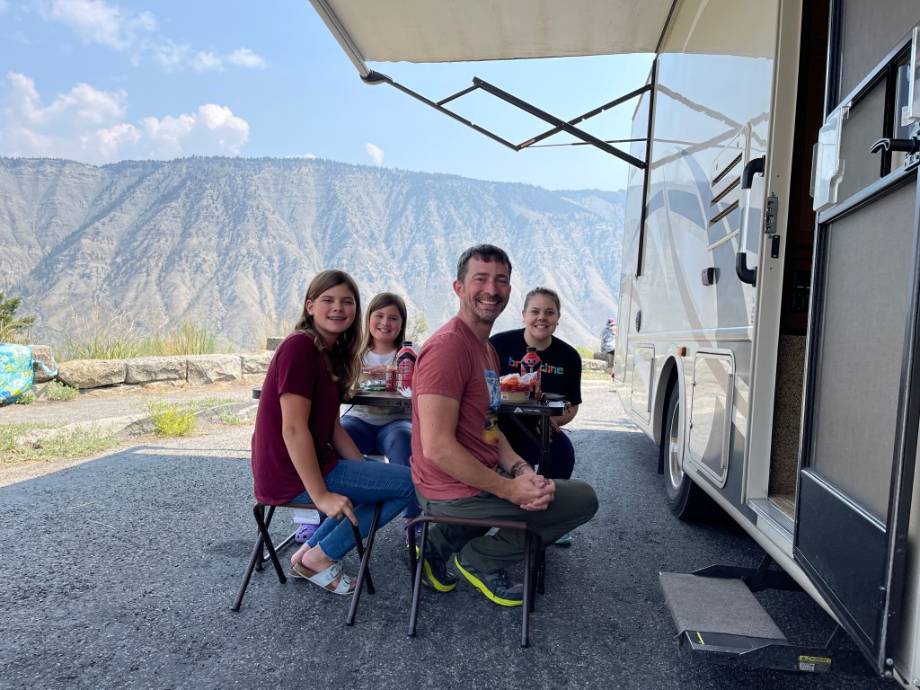 After two super fun days in Ohio, we had to begin the long journey to our next major destination – Yellowstone National Park! Doug pulled out of our campsite before any of us were even out of bed yet – the benefit of having a Class A, I suppose. When your husband thrives in the morning, he can motivate and start making forward progress without having to disturb his sleeping beauties 😴. We may have made it through Indiana before the girls even exited their bunks!