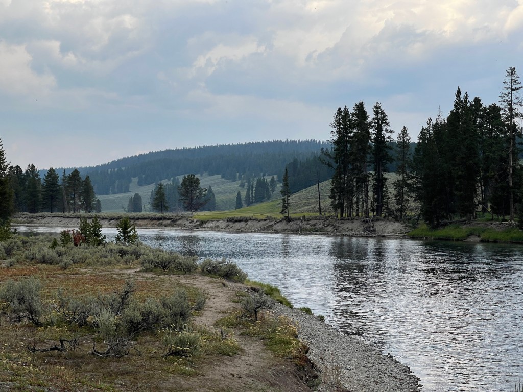 Here is a quick bit of unsolicited advice & a mini-rant… If you are traveling with a camper any bigger than a pop-up, do not stay at Bridge Bay Campground in Yellowstone. It was a nightmare! The sites are essentially tiny paved pull-offs from the camp road. Our RV is only 12 feet wide, when fully extended, and we could not open the slide when parked there. Long story short, we adjusted our plans for the following nights in the park and were very pleased with our campsite at the lovely Grant Village Campground in Yellowstone. It gets two enthusiastic thumbs up 👍🏼 👍🏼