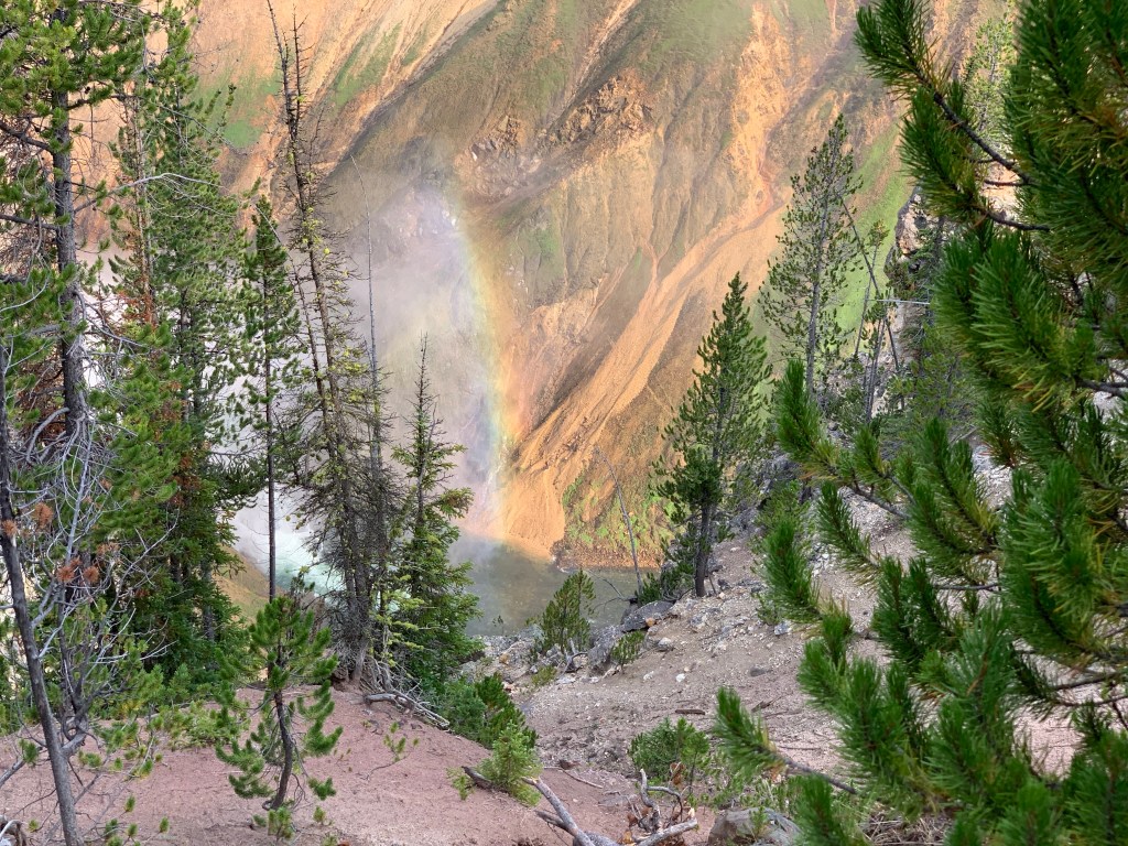 We got up really early in the morning to go see the Upper and Lower Falls of the Yellowstone river. When we first got to the Upper Falls, we could barely see it through all the fog. But when we came back around after seeing the Lower Falls, we could see it clearly. The Lower Falls were gorgeous as well. There was a giant rock wall behind it and pine trees surrounding the area around it. We even saw a rainbow!